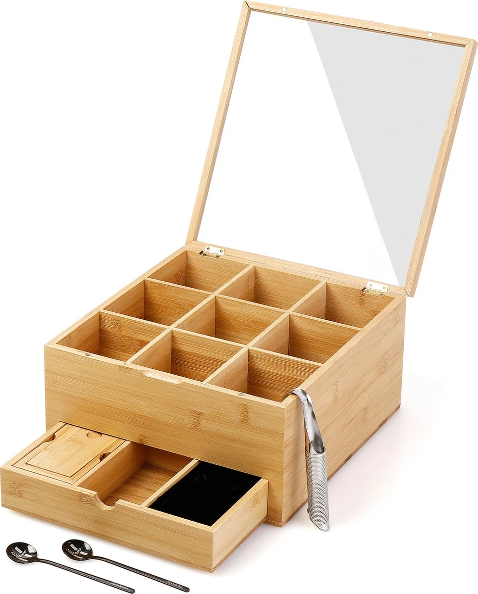 Afmetingen theedoos: 27 x 29 x 15 cm